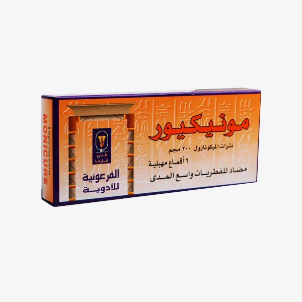 لبوس مونيكيور يستخدم لعلاج الالتهابات المهبلية التي تسببها الفطريات أو البكتيريا ويعد من العلاجات الموضعية ذات الفعالية العالية التي تساهم في تخفيف اعراض الحكة والاحمرار والافرازات غير الطبيعية المرتبطة بهذه الالتهابات، يتركز تأثيره على مكافحة العدوى الميكروبية مما يساهم في تحقيق راحة أكبر للمريض والحد من تطور الحالة الصحية، عادة يوصف هذا العلاج من قبل الأطباء كجزء من خطة علاجية تتناسب مع نوع وشدة الالتهاب ويستخدم