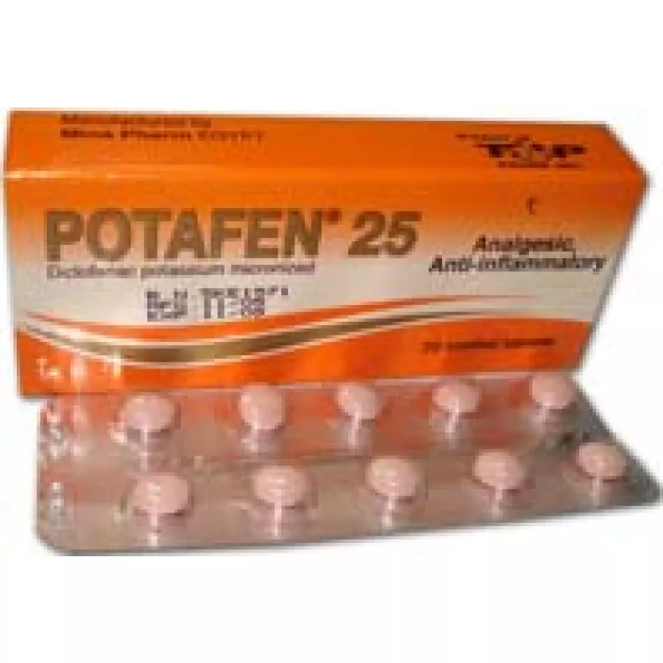Potafen is used to treat rheumatoid arthritis, back pain, toothache, menstrual pain in women, osteoporosis, ligament inflammation, vertebral inflammation, Potafen is used to treat bursitis, children's infections, and the drug treats infections of the nose, ear, and throat.